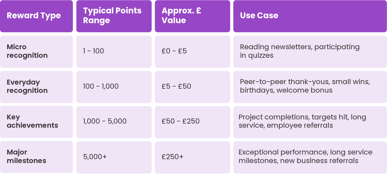 Reward programmes work best when they recognise specific, observable behaviours.