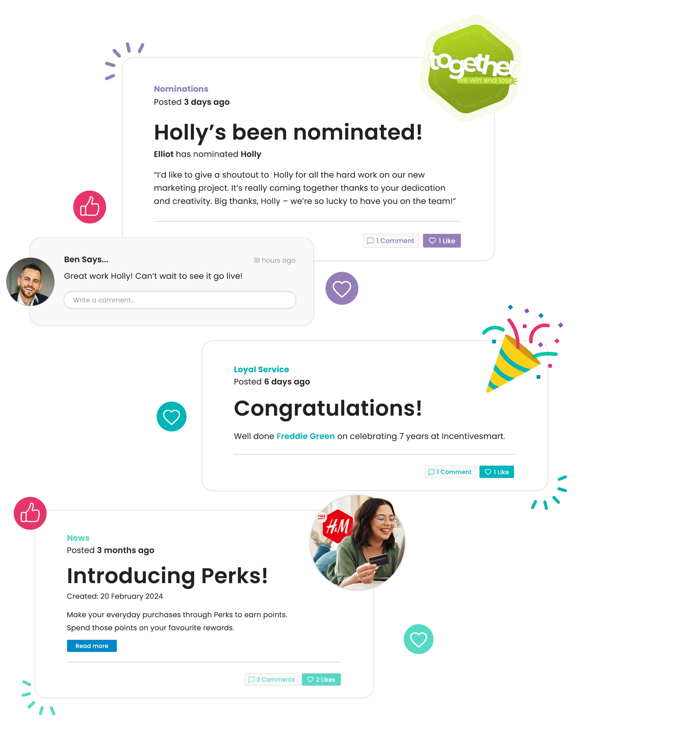 Celebrate milestones, recognise successes and share key updates directly to the homepage transforming your Employee Engagement programme into a more interactive hub.
